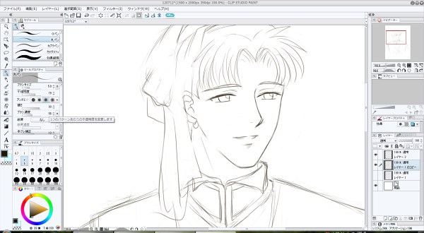 線画→丸ペンで、少し入り抜きの数値を下げてみた。