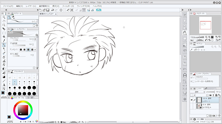 バグなのか、塗りつぶしの領域拡縮にアンチエイリアスがきかないのが、ちょっと気になりましたが、フィルタ機能や、トーンなどが充実すれば製品版欲しいかも~です。